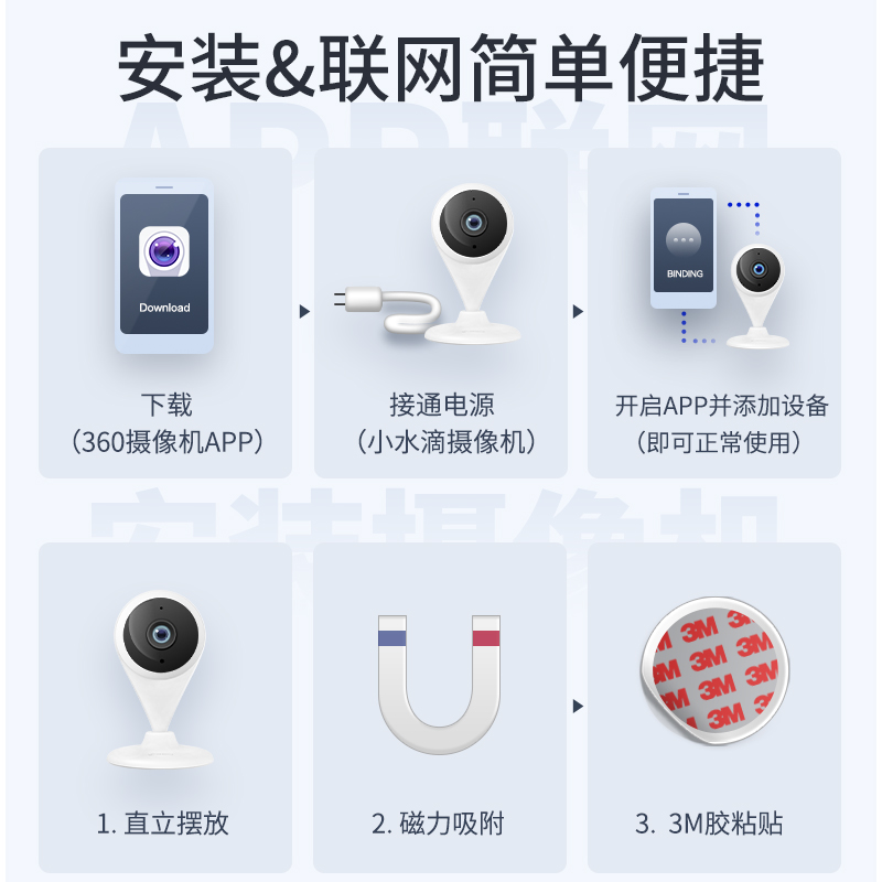 360 摄像头家用监控摄像头智能摄像机 300W小水滴5C 2K版网络wifi家用监控高清摄像头 远程监控AC1P价格:199.00元!