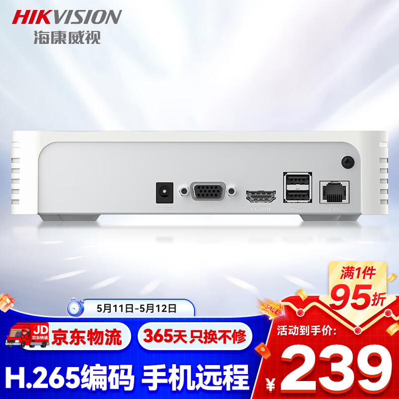 HIKVISION海康威视网络硬盘录像机监控8路支持6T硬盘NVR满配8个摄像头1080P解码DS-7108N-F1价格:256.00元!