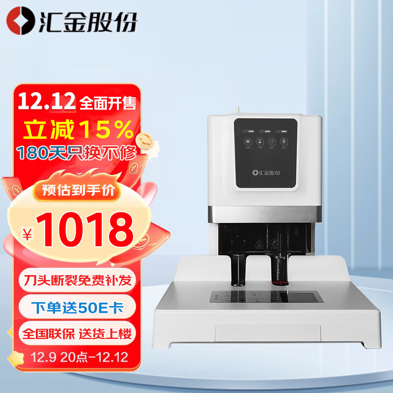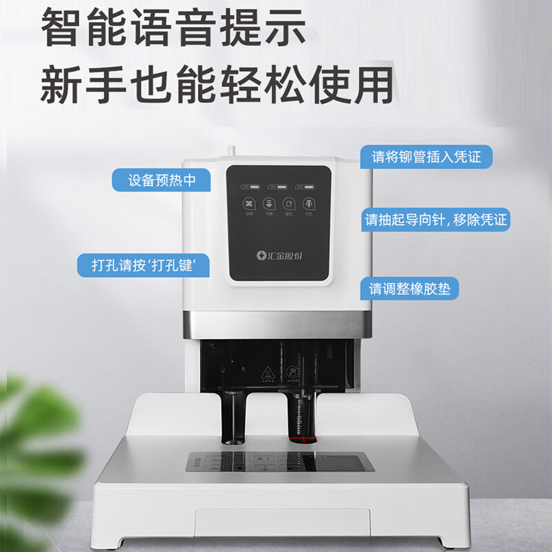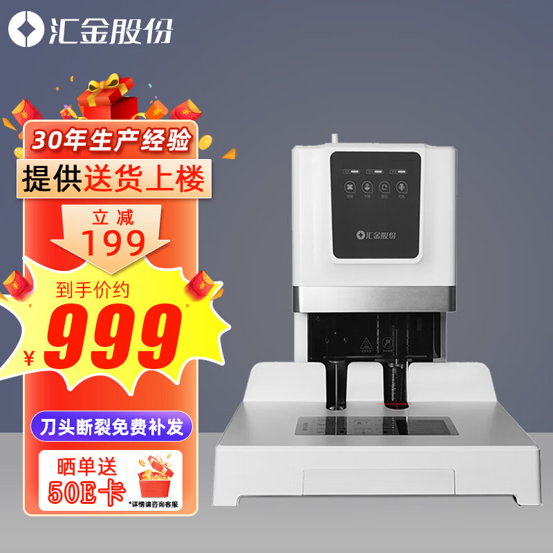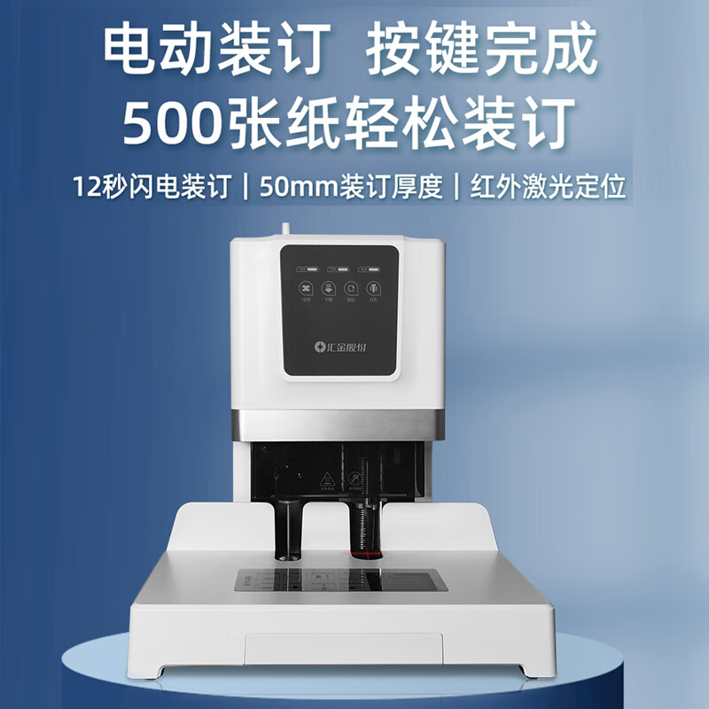 3、产品不错全自动的,之前也看过不少牌子的装订机,还是看中了汇金这个大牌子,毕竟是上市公司品质有保障,试了一下机器,很好,再也不用换孔打眼了,大大提高了装订的效率,售后也很好,回复比较及时,汇金也提供了耗材,整体来说很满意,性价比很高