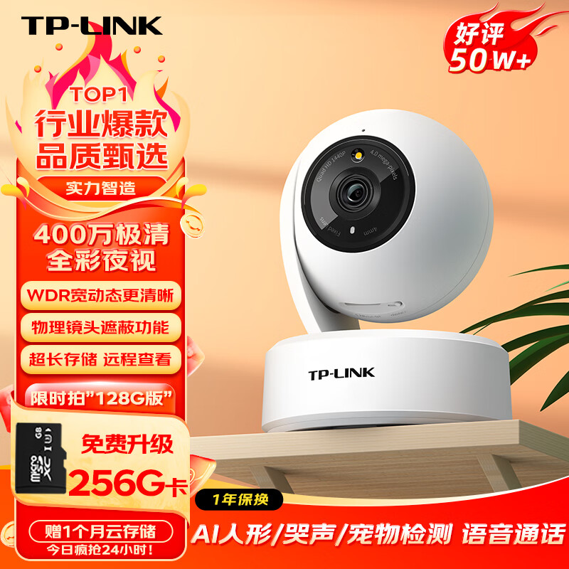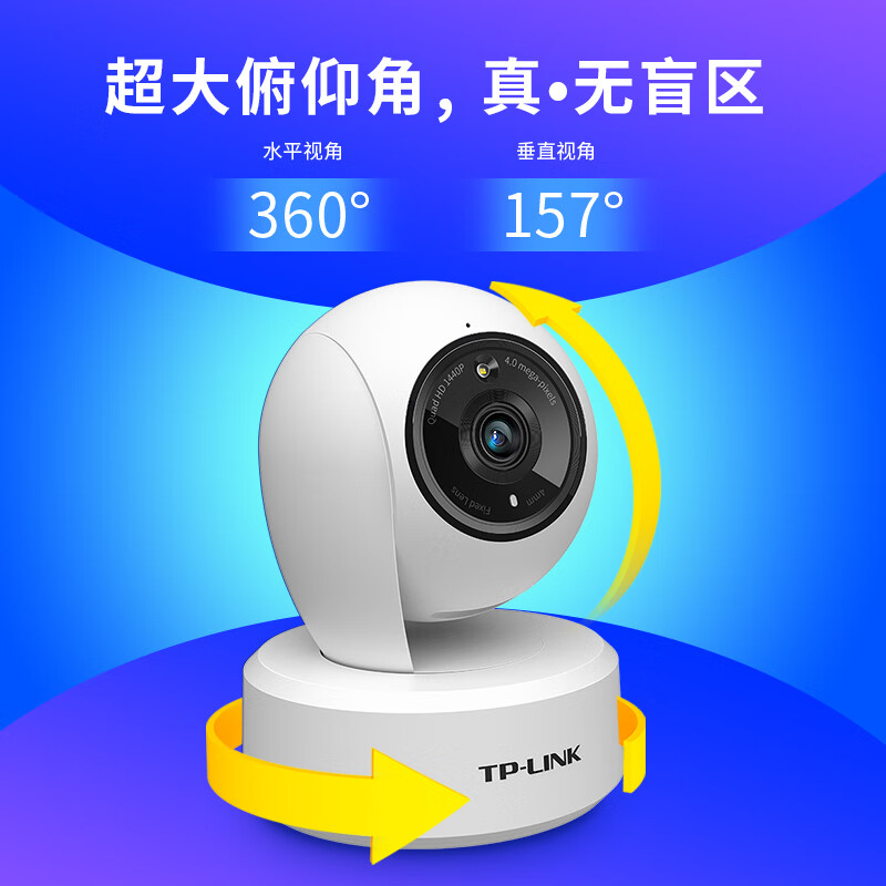 TP-link 全彩400万像素升级2.5K超清无线监控摄像头 家用智能网络监控器摄像机 360全景wifi手机远程 IPC44AW价格:329.00元!