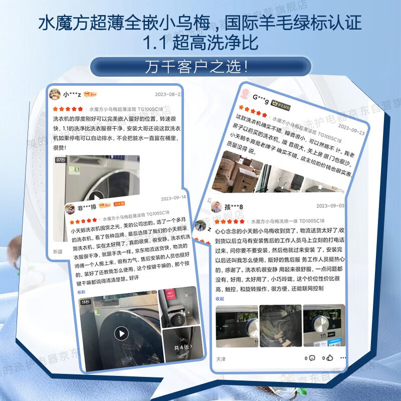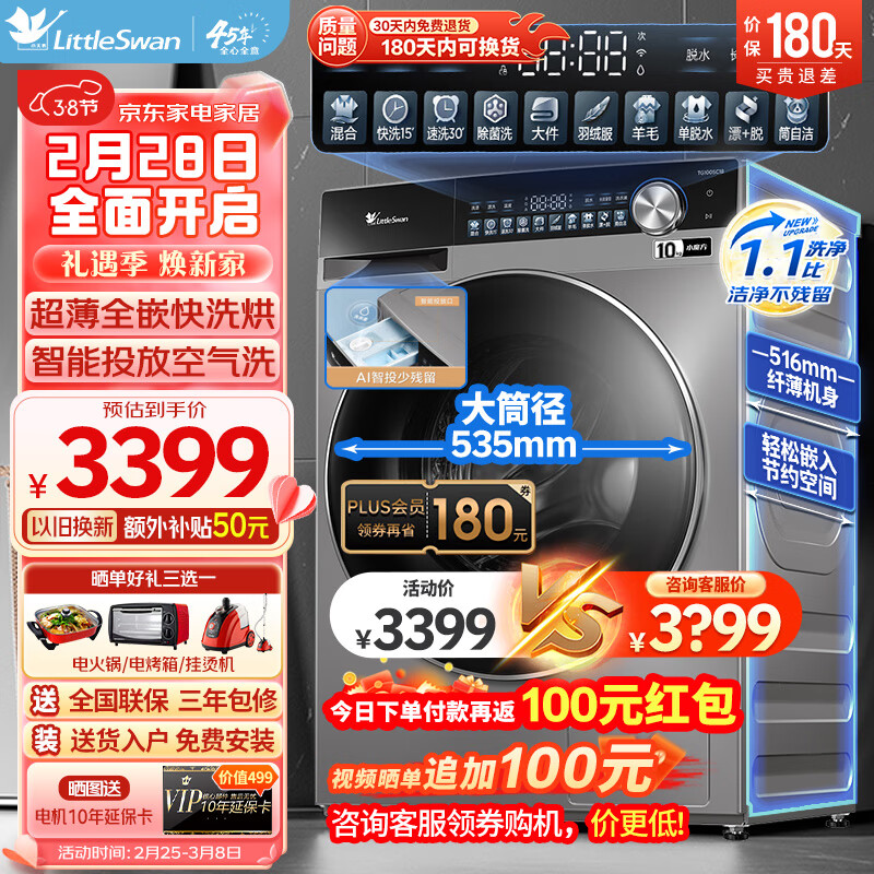 小天鹅10公斤全自动滚筒洗衣机 水魔方护色护形 1.1高洗净比 超薄全嵌-纤彩 小乌梅轻享版 TG100 SC18价格:3499.00元!