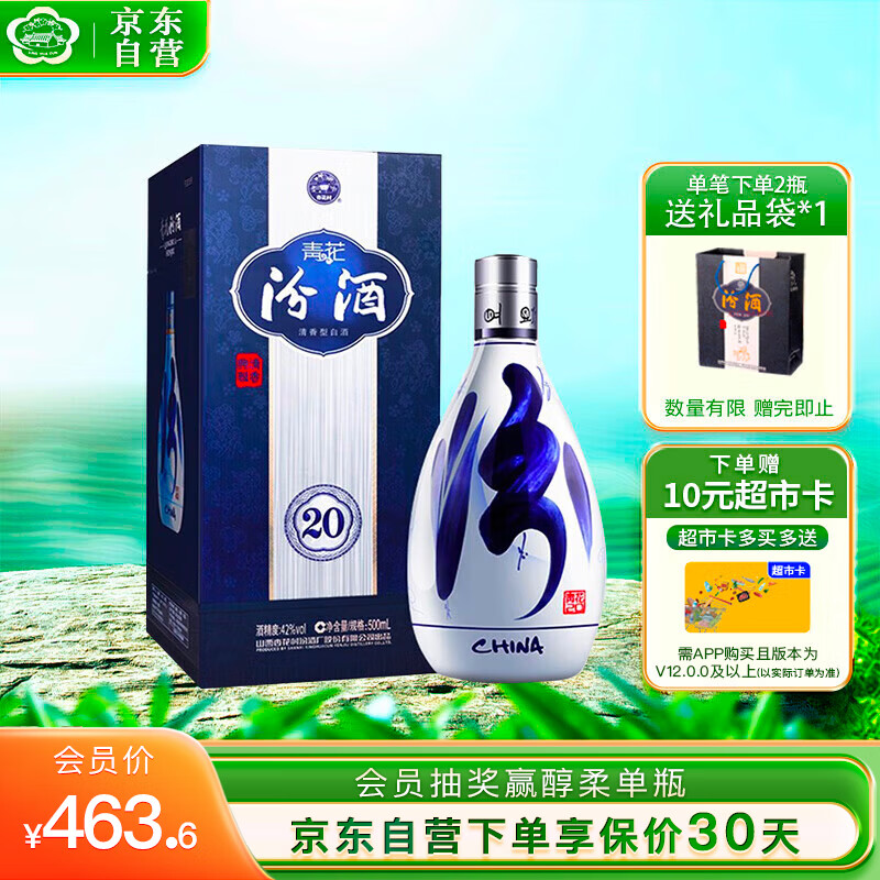 汾酒 青花20 清香型白酒 42度 500ml单瓶装 送礼宴请价格:478.00元!