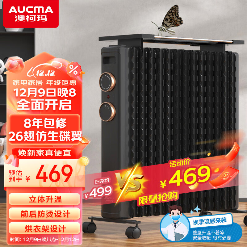 澳柯玛(AUCMA)取暖器 /电暖器/家用13片大油路电热油汀速热电暖气片/卧室客厅烘衣加湿节能烤火炉D922-13价格:454.90元!