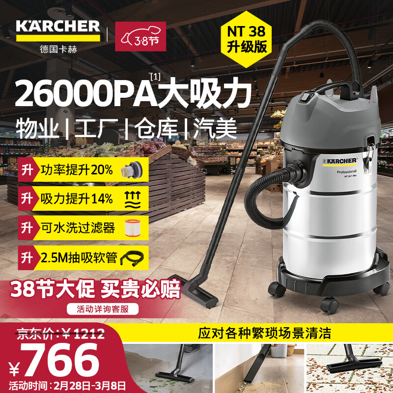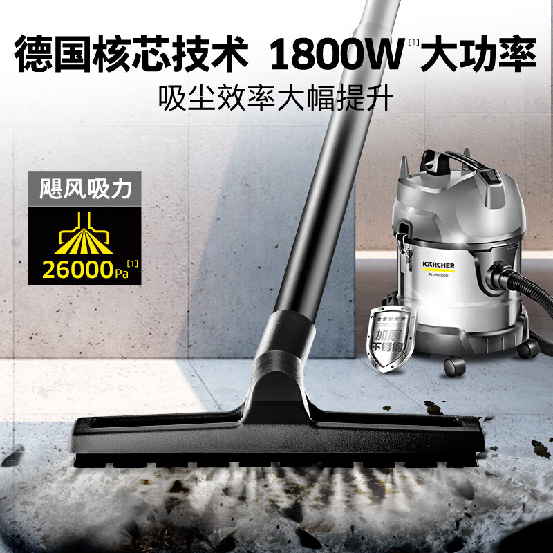 KARCHER德国卡赫 家用商用工业加厚不锈钢桶式干湿两用大吸力吸尘器全新升级 NT 38/1 Plus价格:766.00元!