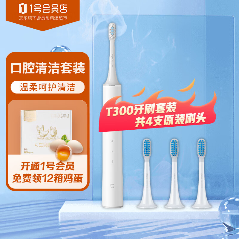 米家小米声波电动牙刷T300+原装敏感牙刷头套装成人男女充电式防水牙刷价格:129.00元!