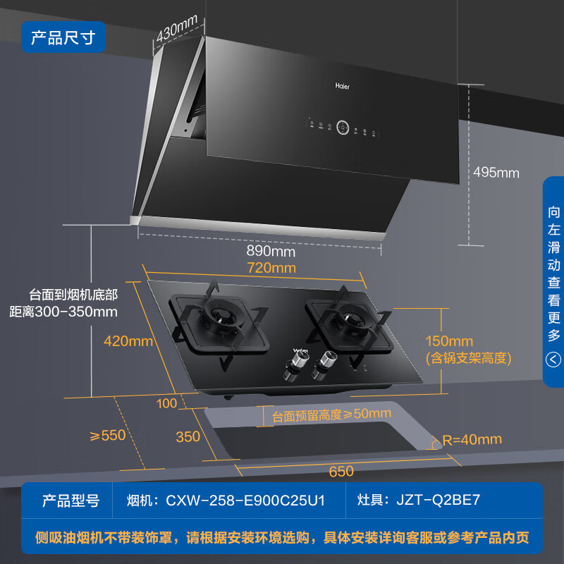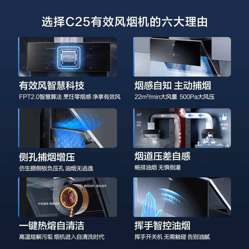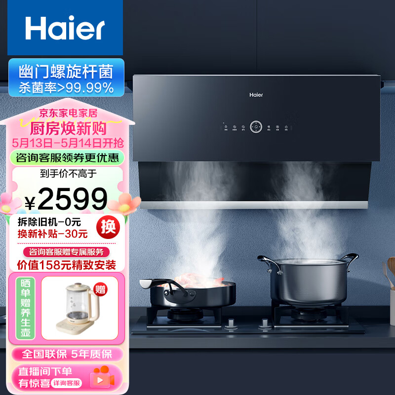 海尔(Haier)抽油烟机 烟灶套装 有效风 22m3/min挥手智控热熔洗5.2kW定时家用侧吸油烟机套装C25+Q2BE7(天)价格:2599.00元!