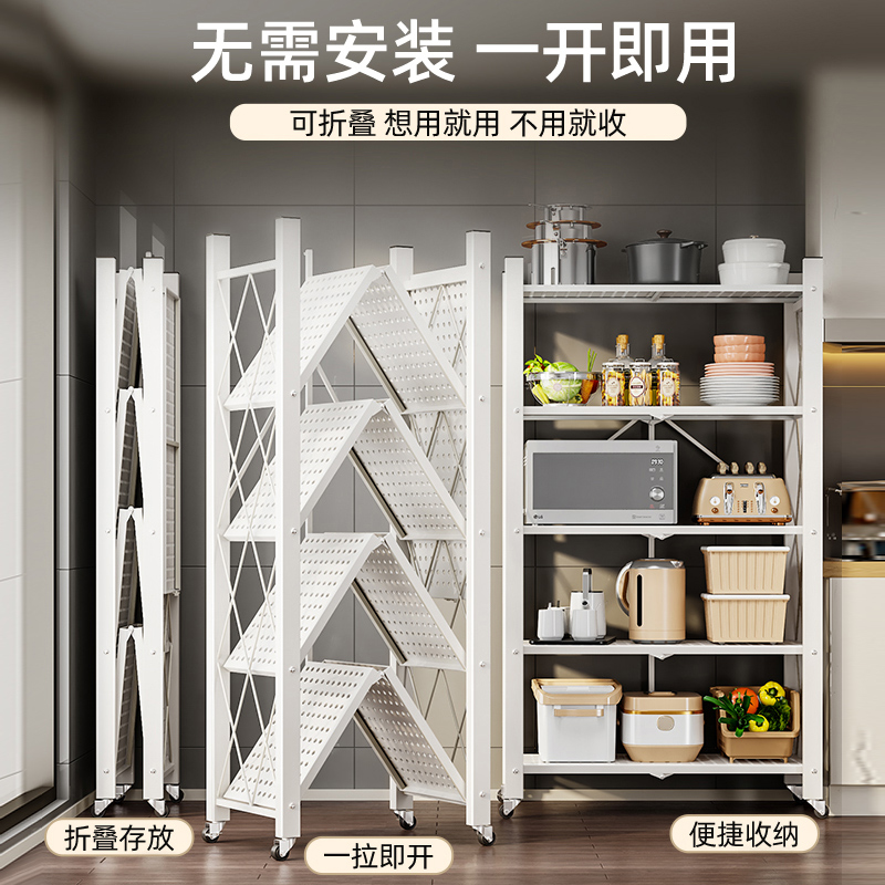 溢彩年华 免安装厨房置物架落地可移动折叠储物架家用阳台收纳架子6060WH价格:339.00元!