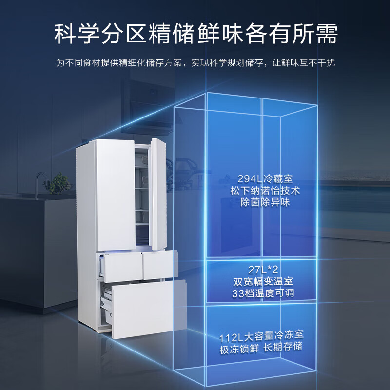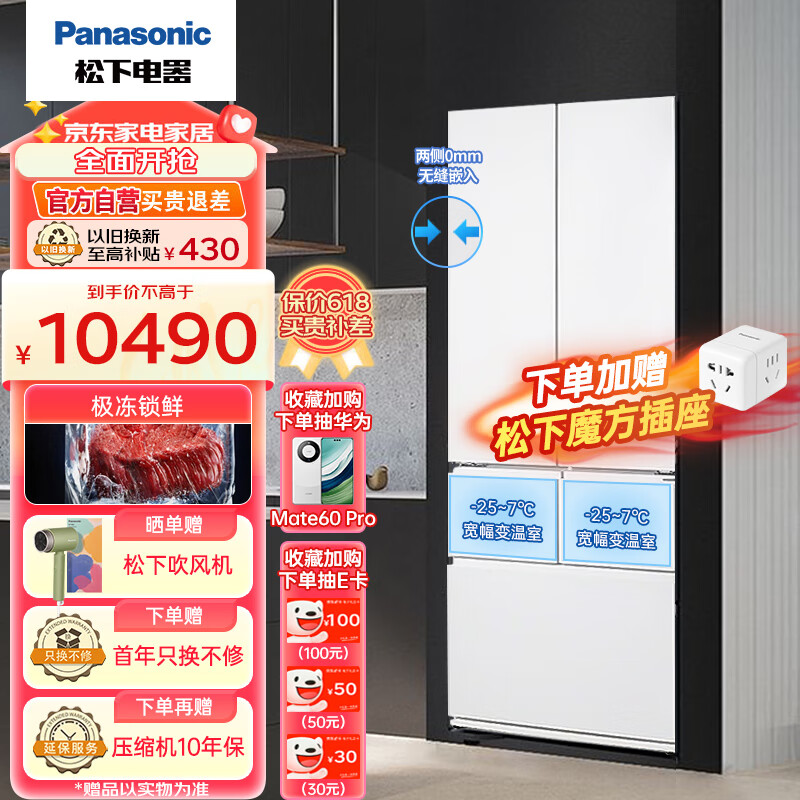 松下(Panasonic)大白PRO 460升家用多门冰箱一级能效五开门大容量580mm超薄嵌入式冰箱NR-JW46BGB-W珍珠白价格:10990.00元!