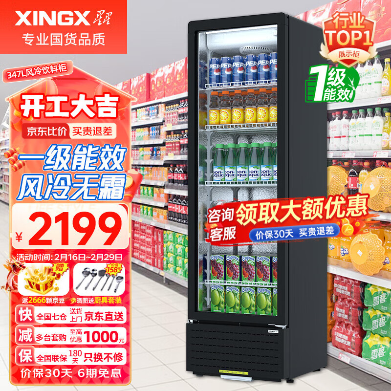 星星(XINGX)展示柜冷藏饮料柜一级能效单门立式冰柜商用保鲜冰箱风冷直冷超市便利店陈列柜啤酒水果柜 风冷无霜 1级能效347升LSC-360WYPE价格:2199.00元!