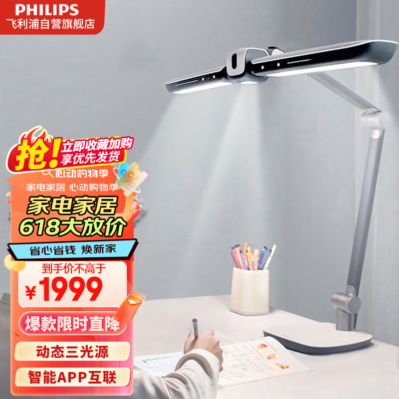 飞利浦(PHILIPS)护眼学习台灯全光谱儿童护眼台灯国AA级学生阅读台灯A7价格:3699.00元!