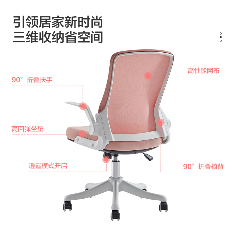 得力(deli)91106椅背扶手可翻折电脑椅 居家办公椅 学习座椅 家用舒适 粉色价格:349.00元!