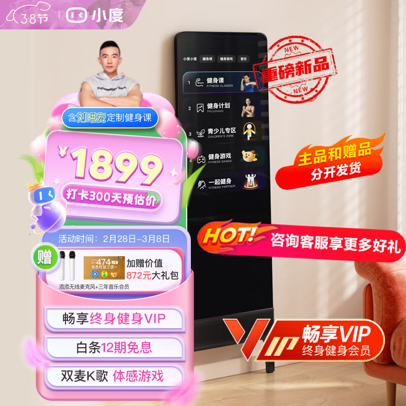 小度添添智能健身镜 S40 健身畅享版 魔镜 运动镜 穿衣镜 AI居家减肥塑身燃脂 含终身会员 女神礼物价格:2899.00元!