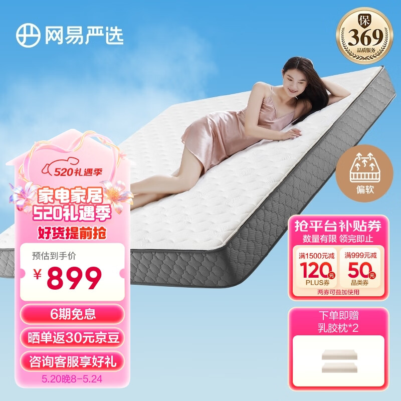 网易严选 弹簧床垫1.2米*2米 乳胶床垫 3D椰棕席梦思床垫 乳胶款价格:999.00元!