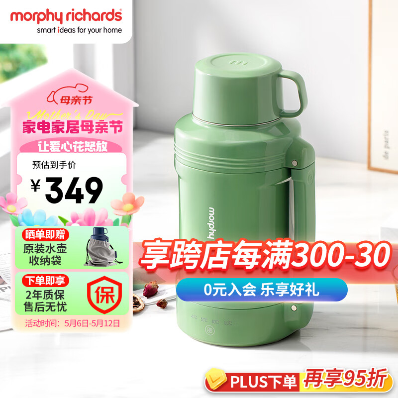 摩飞电器(Morphyrichards)电水壶 便携式烧水壶家用旅行户外大容量电热水壶保温壶 双层不锈钢防烫电热水杯MR6061清新绿价格:379.00元!