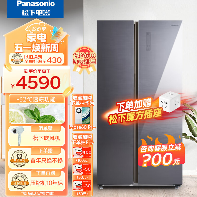松下(Panasonic)冰箱632升大容量冰箱双开门对开门1级能效银离子kang菌风冷无霜家用冰箱优选NR-EW63WXA-H价格:4290.00元!