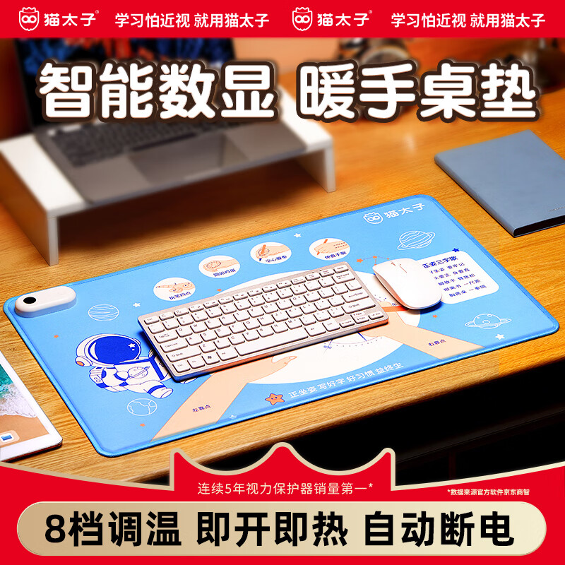 猫太子加热桌垫暖桌垫加长加大桌面鼠标发热桌垫写字台办公桌电热加热垫冬季加大加长暖手垫子 33*80cm 蓝价格:99.00元!