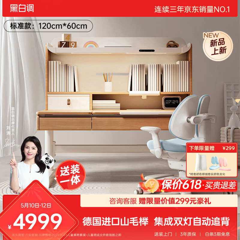 黑白调学习时光S2学习舱【德国进口山毛榉 集成双灯 自动追背】儿童学习桌1.2m蓝价格:5999.00元!