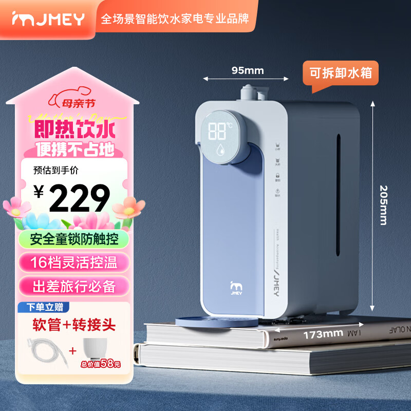 集米(jmey)M2PLUS即热式饮水机莫奈蓝套装带水箱便携式即热饮水机迷你台式家用小型速出差旅行电水壶价格:229.00元!