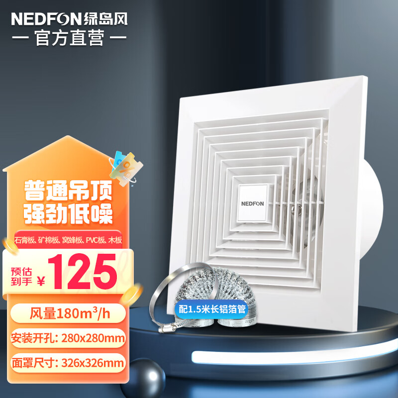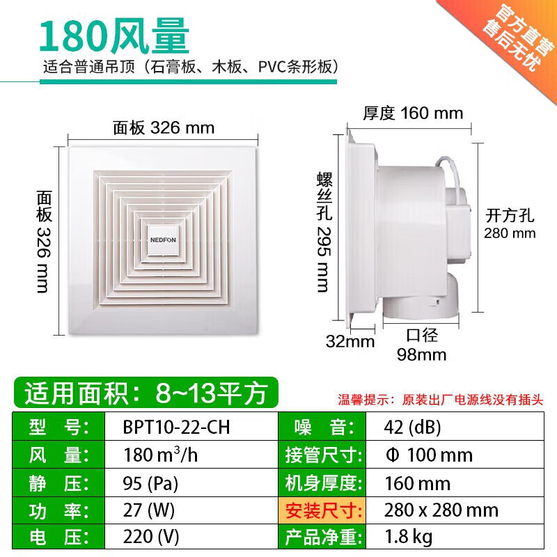 绿岛风(Nedfon)BPT10-22-CH 排气扇厨房管道抽风机木板吊顶排风扇卫生间换气扇价格:125.00元!
