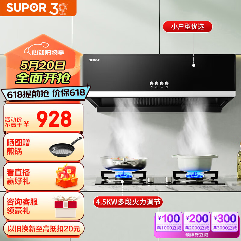 苏泊尔(SUPOR) 抽油烟机 中式油烟机套装 15立方家用小户型吸油烟机灶具套装 Z1D+DB19液化气价格:928.00元!