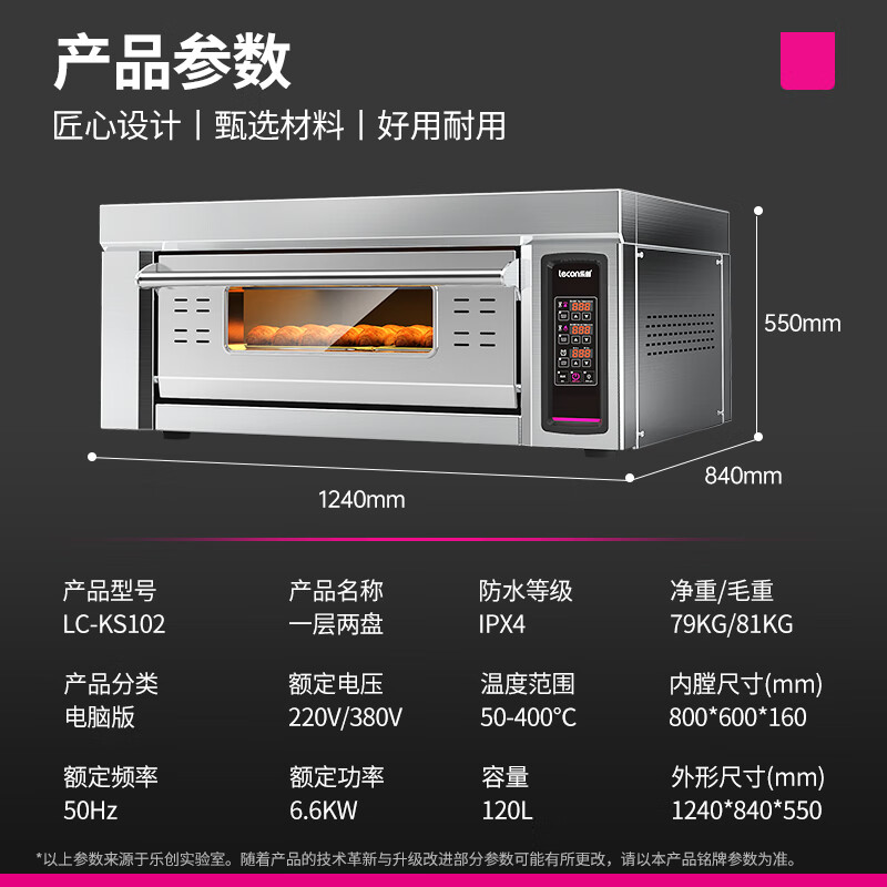 乐创(lecon)商用烤箱大型专业电烤箱大容量 披萨面包蛋糕月饼烘焙烤箱一层两盘 LC-KS102价格:2380.00元!