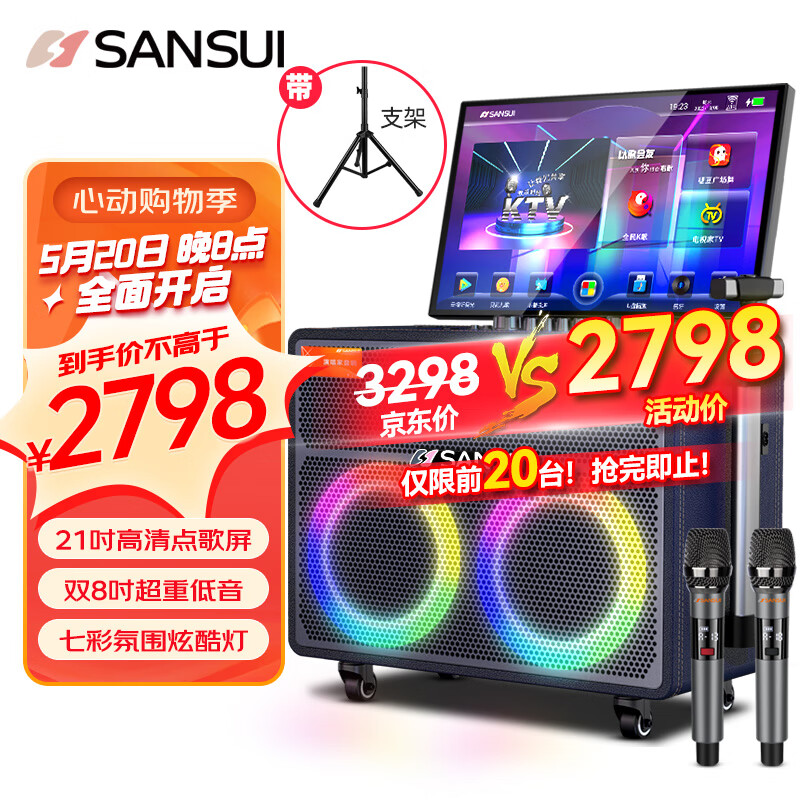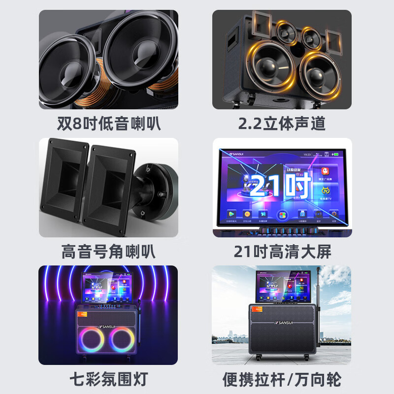 山水(SANSUI)MD289家庭ktv音响套装便携户外广场舞音响带显示屏带氛围灯家用移动k歌音箱点歌机触摸屏一体机价格:3298.00元!