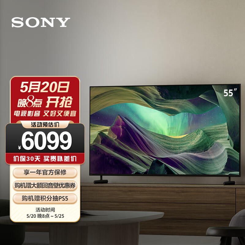 索尼(SONY)【官方直营】KD-55X85L 55英寸 4K HDR 屏智能电视 广色域 120Hz高刷 X1芯片京配上门价格:6499.00元!