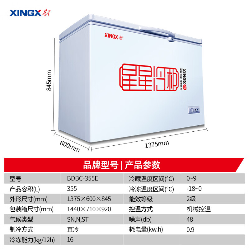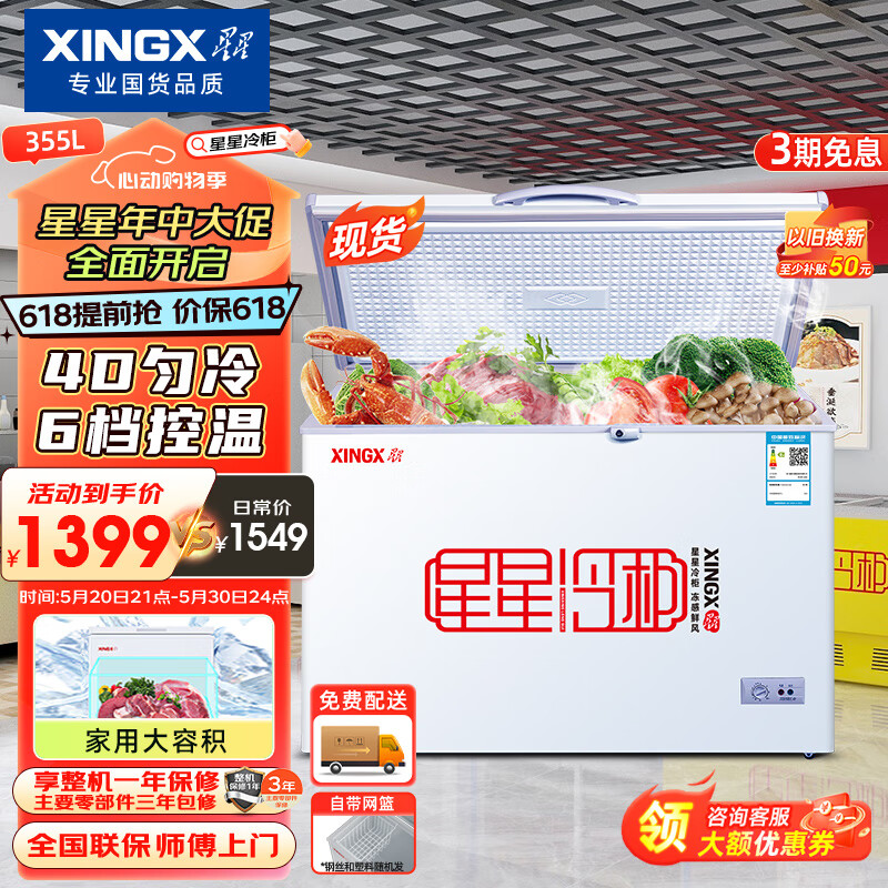 星星(XINGX) 355升 商用单温冰柜 单箱变温冰箱 冷藏冷冻转换冷柜 断电保护 顶开门 BD/BC-355E价格:1399.00元!