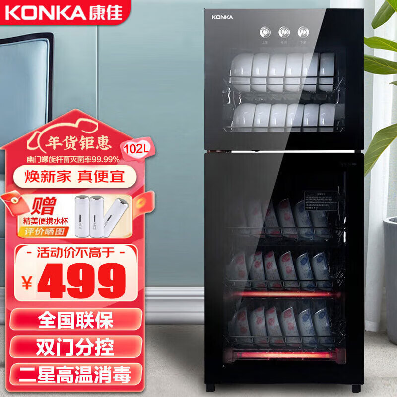 康佳(KONKA)商用消毒柜家用消毒碗柜立式臭氧杀菌红外线高温大容量102L双门ZTP168K23(B)价格:799.00元!