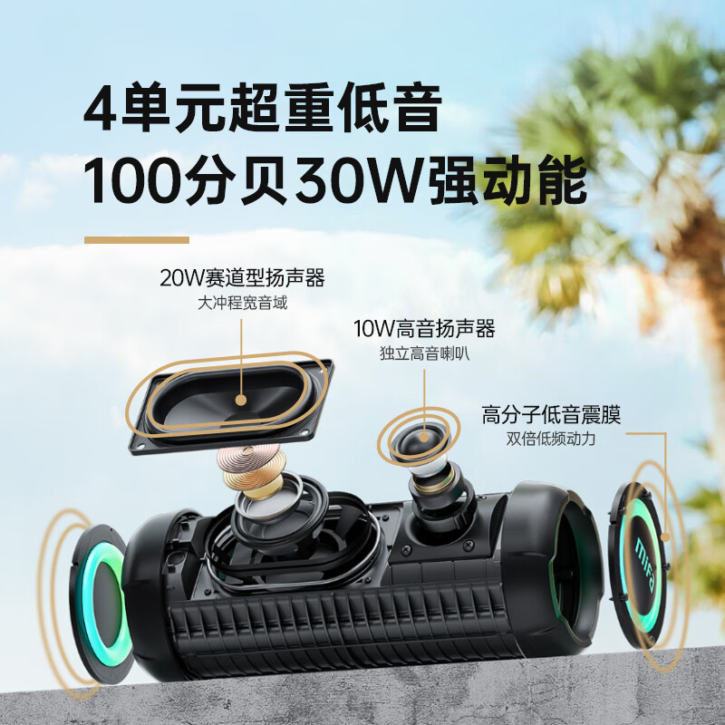 2、声音够大,还有低音增强功能,60W大功率超过了JBL战鼓2的40W,性价比高!还有氛围灯效,在外露营逼格直接拉满。