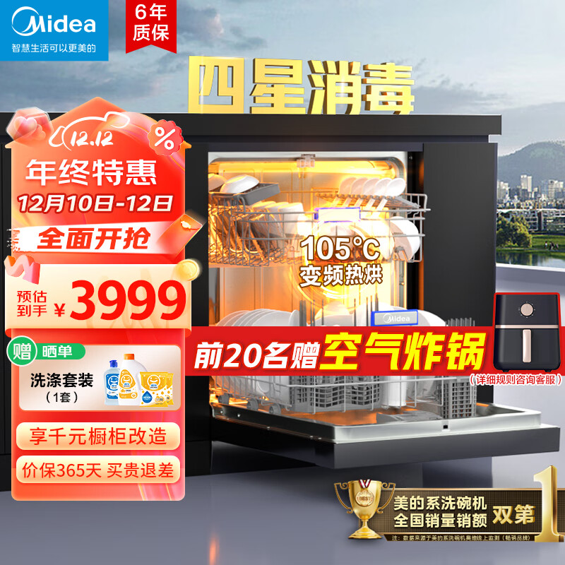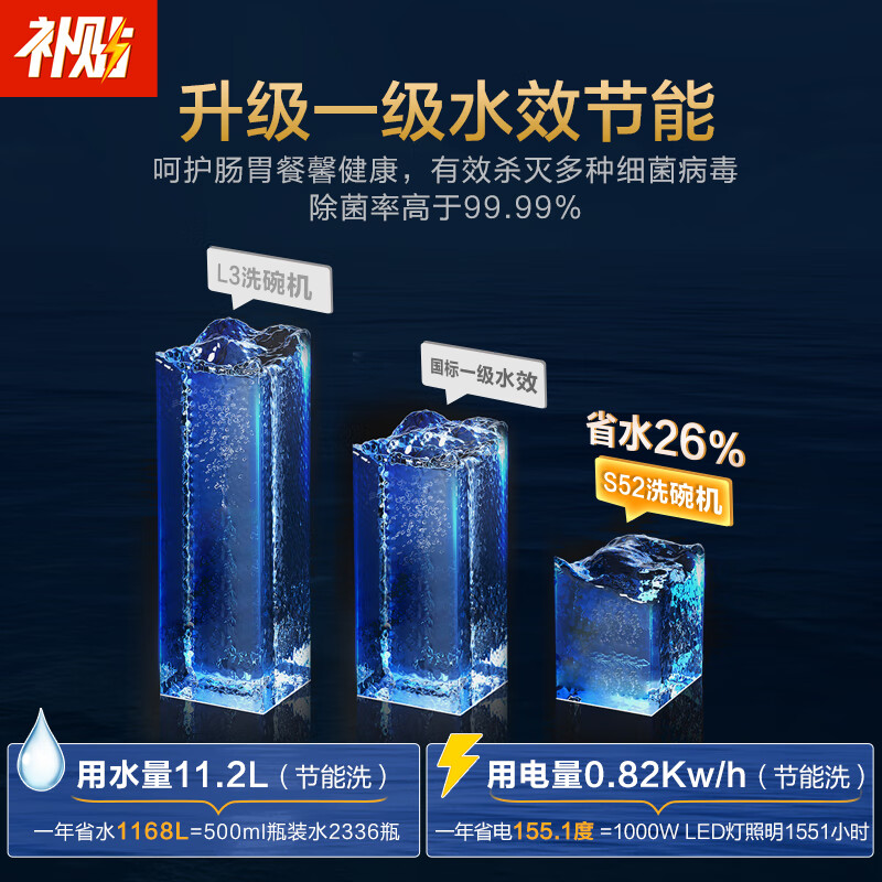 美的(Midea)14套晶焰S52-X嵌入式洗碗机 变频一级水效 四星消毒105℃高温热烘可升降碗篮 变频洗碗机S65/P60价格:3999.00元!
