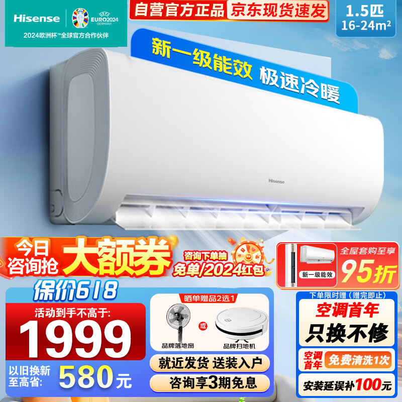海信(Hisense)1.5匹 速冷热 新一级能效 大风量速冷暖 APP智能变频防直吹壁挂式卧室空调挂机 KFR-35GW/E370-X1价格:2097.00元!