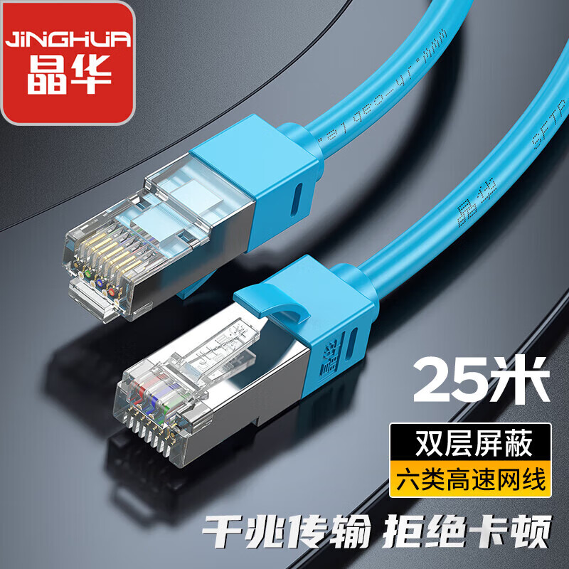 晶华 六类双屏蔽网线 千兆Cat6类纯铜网络连接线 家用工程脑宽带监控8芯双绞跳线 蓝色20米 W130N价格:98.30元!