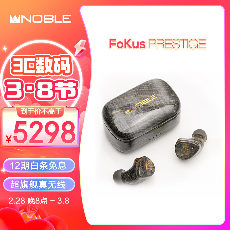 诺岱音响(Noble)Fokus Prestige 真无线蓝牙耳机 发烧级圈铁混合单元长续航蓝牙5.2 入耳式耳机 黑色价格:5298.00元!