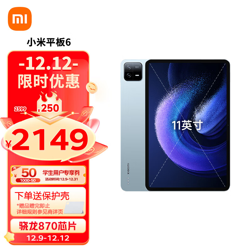 小米平板6(xiaomiPad)11英寸 骁龙870 144Hz高刷护眼 2.8K超清 8+256GB会议笔记移动办公娱乐平板电脑 远山蓝价格:2149.00元!