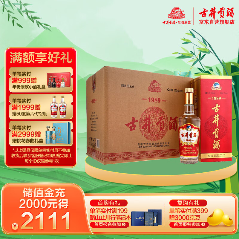 古井贡酒1989 浓香型白酒 50度 500ml*6瓶 整箱装价格:609.00元!