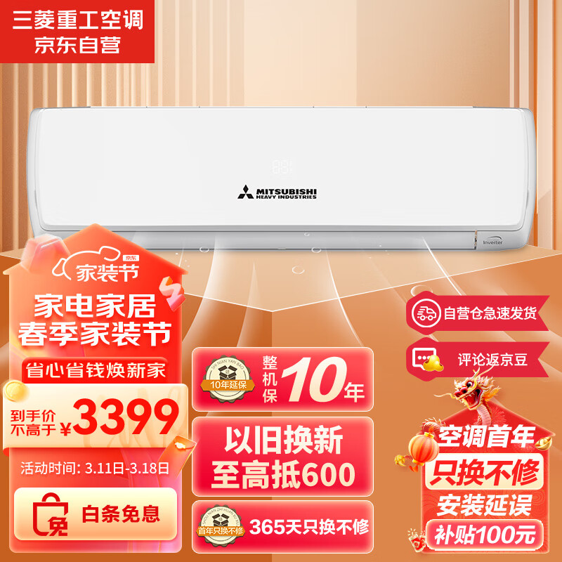 三菱重工适用11-16㎡ 新三级能效 1匹 变频冷暖 空调挂机智能电辅热远程送风三菱空调SRKQH26以旧换新价格:3399.00元!