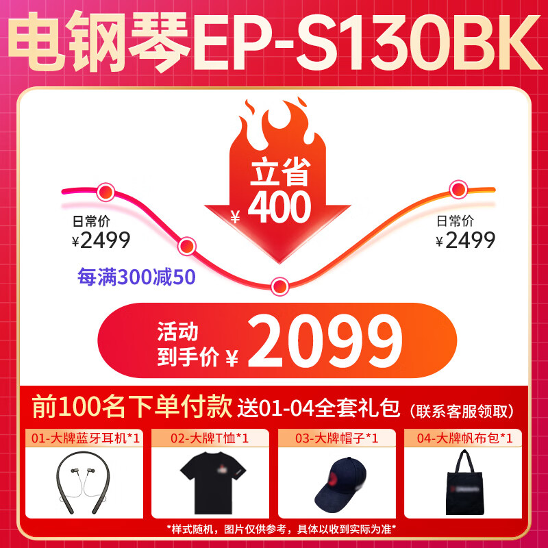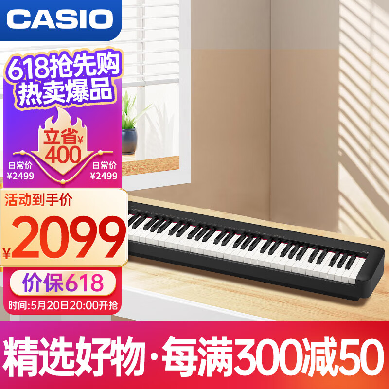 卡西欧(CASIO)电钢琴EPS130黑色电子数码钢琴88键重锤初学单机款价格:2499.00元!