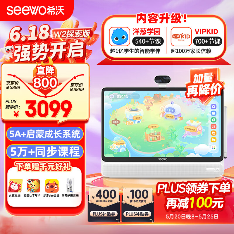 希沃学习机W2 15.6英寸防眩光 类纸护眼平板电脑 家教机 AI学生平板 点读机探索版珍珠白6G+256G价格:3199.00元!