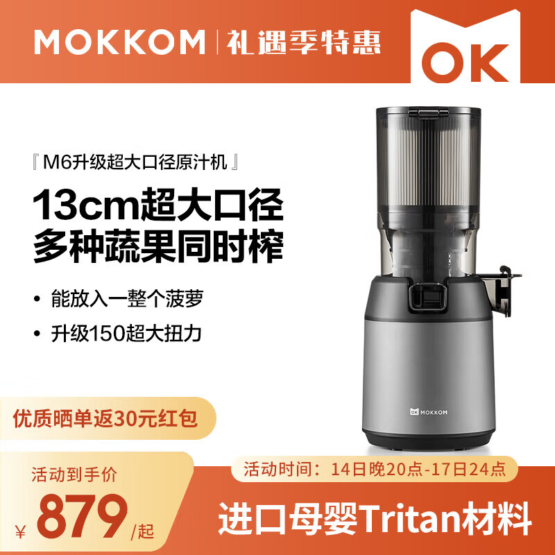 mokkom磨客大口径原汁机榨汁机汁渣分离家用低速便携果蔬多功能鲜榨炸果汁机可商用电动料理机M6银灰色价格:879.00元!