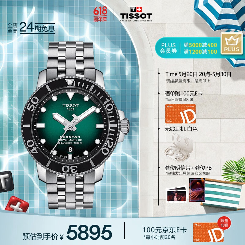 天梭(TISSOT)龚俊同款 海星系列钢带机械男表 520送男友T120.407.11.091.01价格:6550.00元!