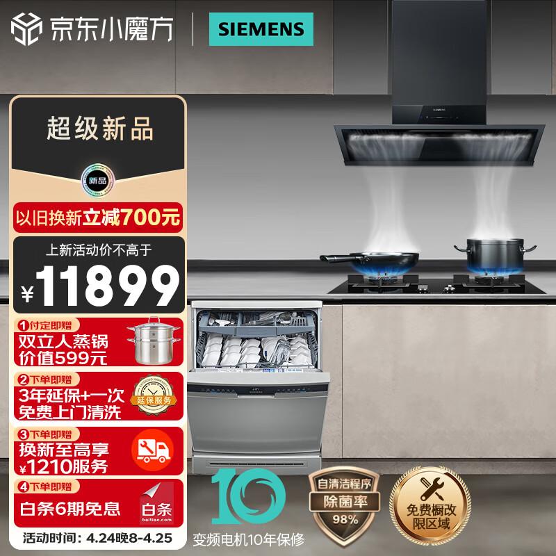 西门子(SIEMENS)超薄侧吸油烟机燃气灶三件套洗碗机16套大容量全能舱洗碗机家用套装厨房多件套1B3BNW+23MP+SJ23H价格:11899.00元!