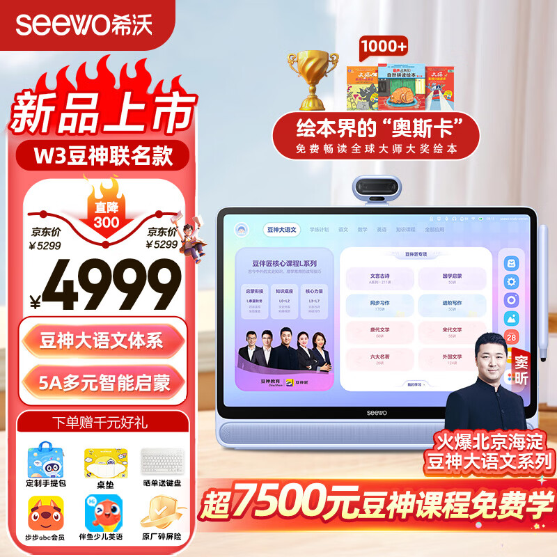希沃学习机W3豆神联名款大语文类纸护眼大屏学生平板电脑小学到高中同步英语学习早教机8G+128G星辰紫价格:5299.00元!