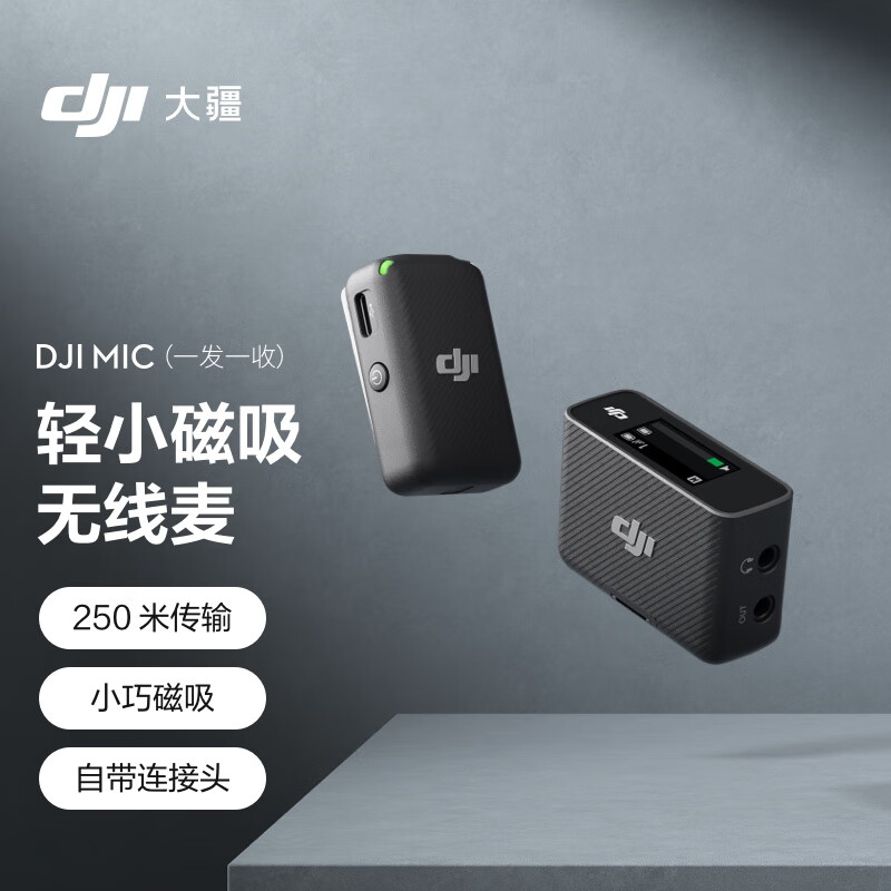 大疆 DJI Mic 一拖一领夹无线麦克风 手机相机收音器 采访vlog直播录音收音麦 大疆麦克风价格:1099.00元!