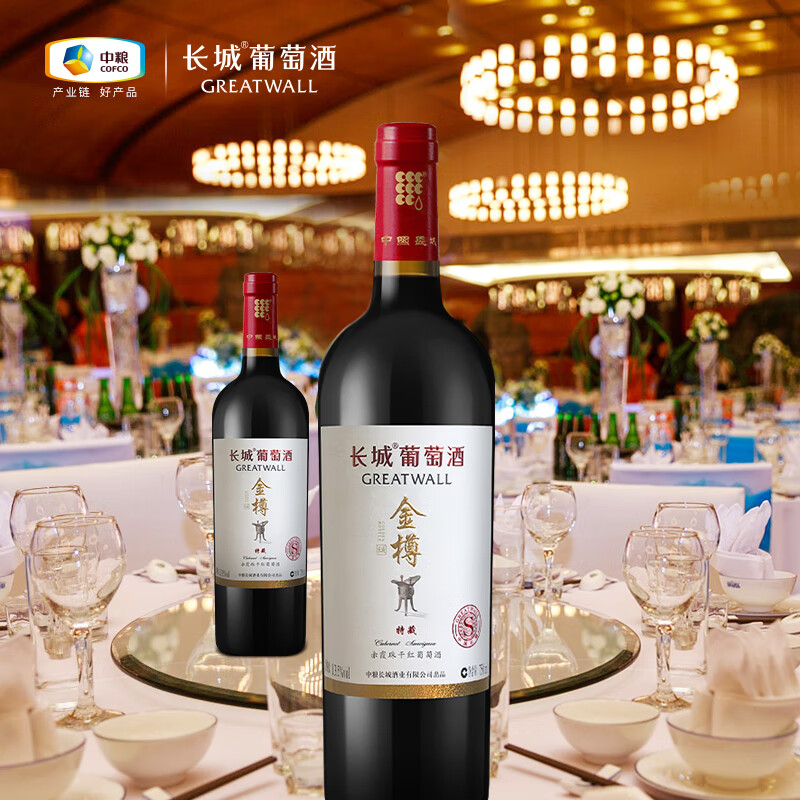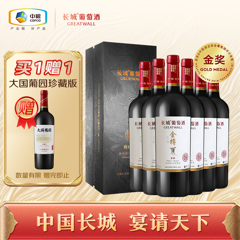 长城 金樽 特藏赤霞珠干红葡萄酒 礼盒 750ml*6瓶 整箱装(含礼品袋)价格:1630.00元!