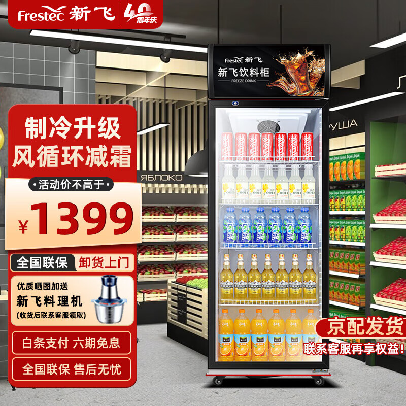 新飞(Frestec)400升单门冷藏冰箱展示柜商用 超市饮料啤酒保鲜冷柜冷饮茶叶陈列柜LC-238XHJH价格:1399.00元!