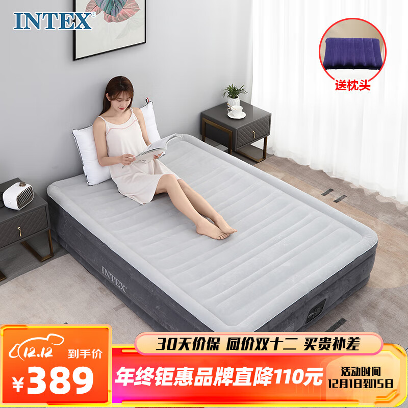INTEX新67768 NP豪华内置电泵双人充气床 家用便携午休户外帐篷折叠床价格:389.00元!