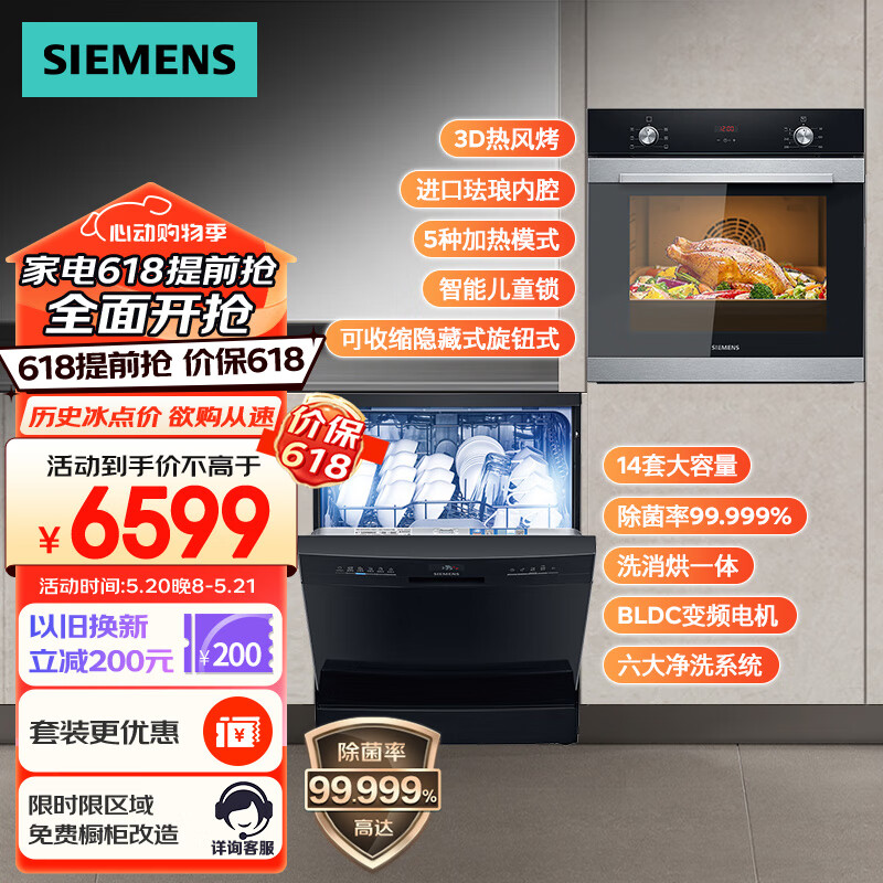 西门子洗嵌套装 14套大容量家用洗碗机+进口嵌入式烤箱组合套装 SJ23HB66KC+HB313ABS0W价格:6599.00元!