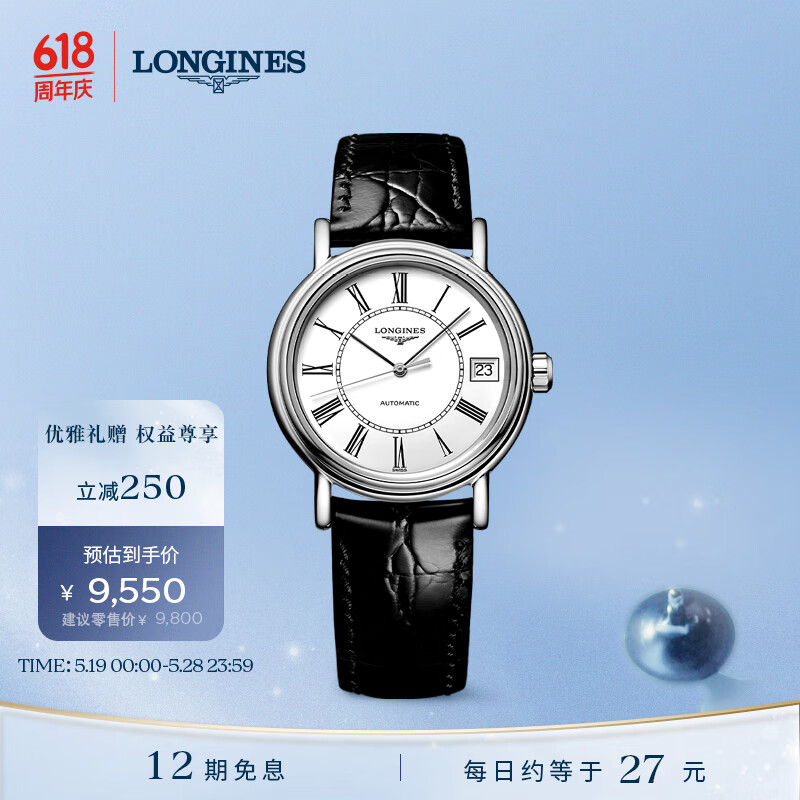 浪琴(LONGINES)瑞士手表 时尚系列 机械皮带女表 520情人节礼物 L43224112价格:9550.00元!