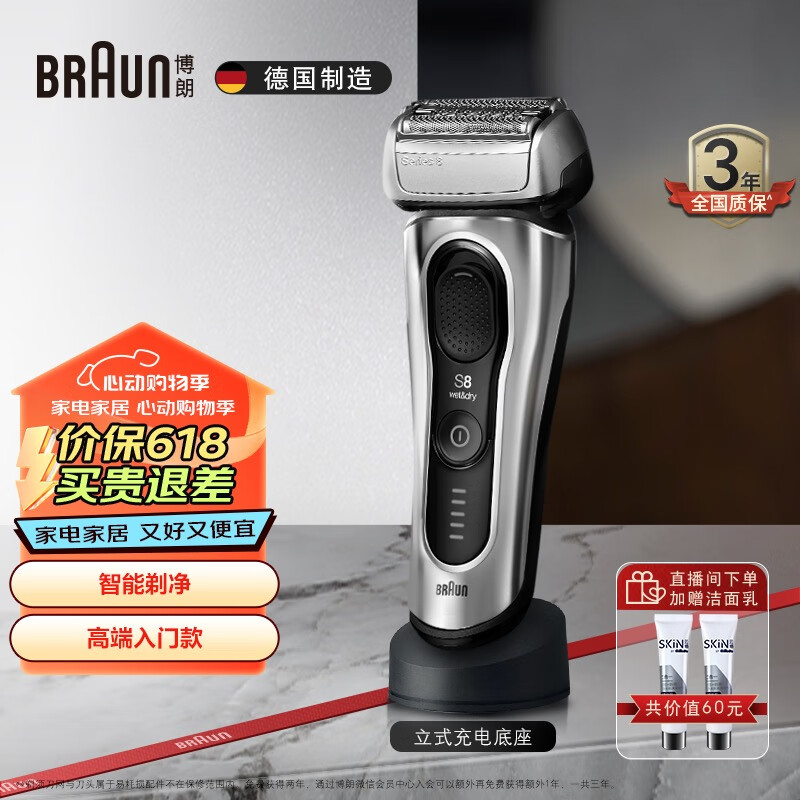 博朗(BRAUN)520礼物送男朋友旗舰8系Pro电动剃须刀整机德国进口往复式剃须刀电动刮胡刀男士生日礼物送男友价格:999.00元!